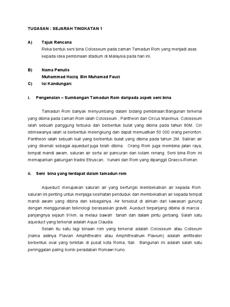 Up to 3 cash back Pengenalan Sumbangan Tamadun Rom daripada aspek seni bina. Search Results For Contoh Seni Bina Islam Di Luar Negara. Kaedah kajian kerja kursus sejarah tingkatan 1 seni bina tamadun rom.